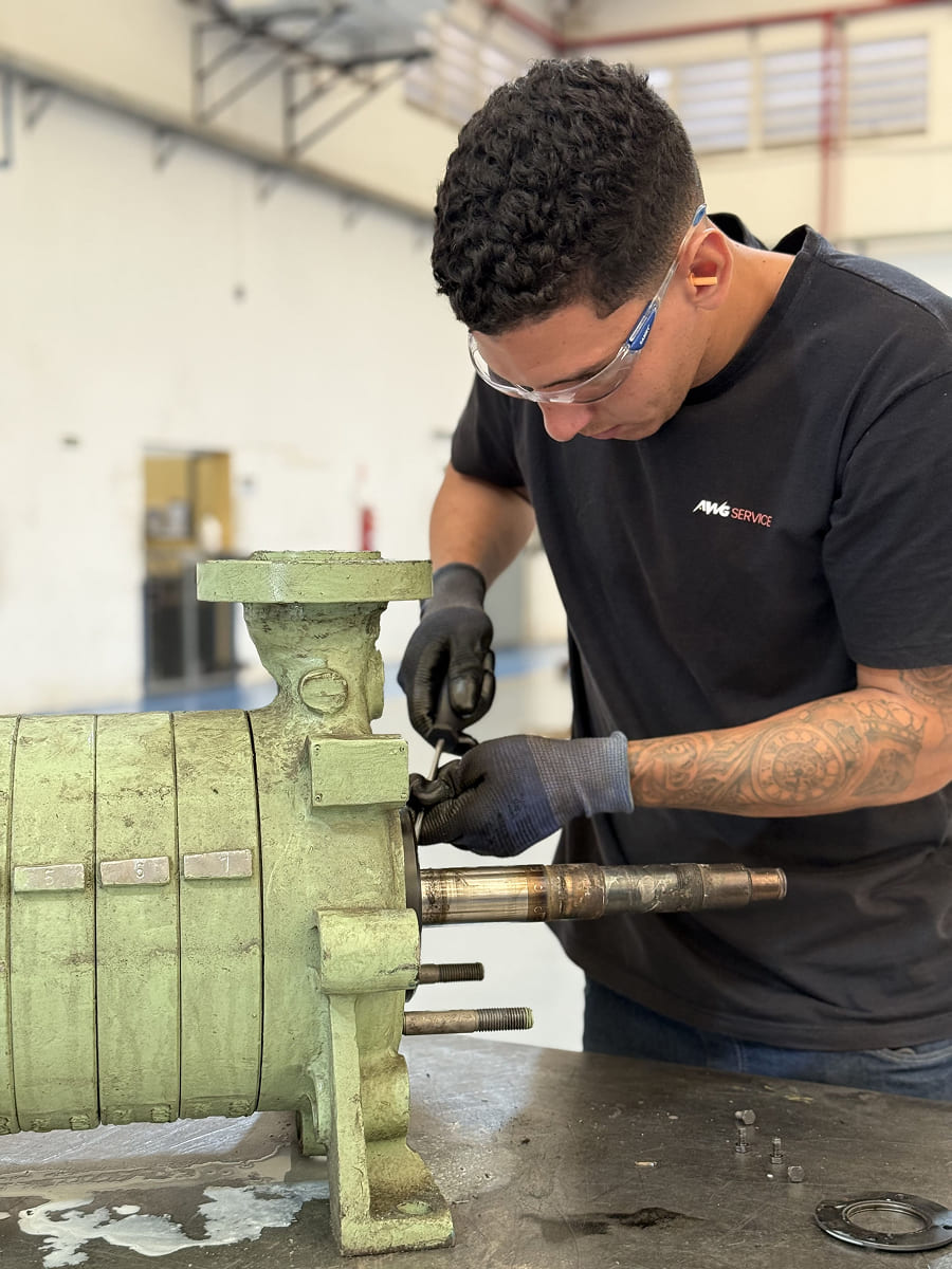 Com atuação nacional, infraestrutura robusta e equipe técnica especializada, a AWG Group oferece soluções completas em manutenção multimarcas de equipamentos rotativos, como bombas centrífugas, bombas de vácuo, sopradores tipo Roots, redutores e mais. Também somos Service Autorizado KSB na região de São Paulo, com estoque estratégico de peças e bombas originais, atendimento ágil e suporte técnico consultivo para vendas e projetos.
