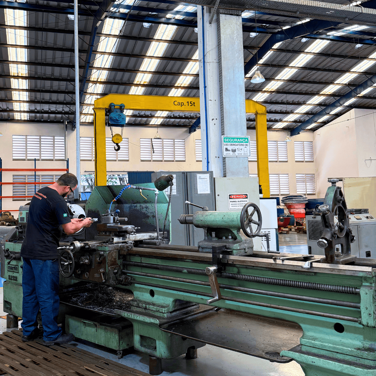 Cada detalhe da nossa estrutura, dos pórticos com capacidade para até 15 toneladas às cabines de pintura e áreas de usinagem própria, foram pensados para assegurar precisão, eficiência e segurança em todos os processos, garantindo a entrega de um padrão de qualidade que nos posiciona como referência nacional em manutenção industrial.